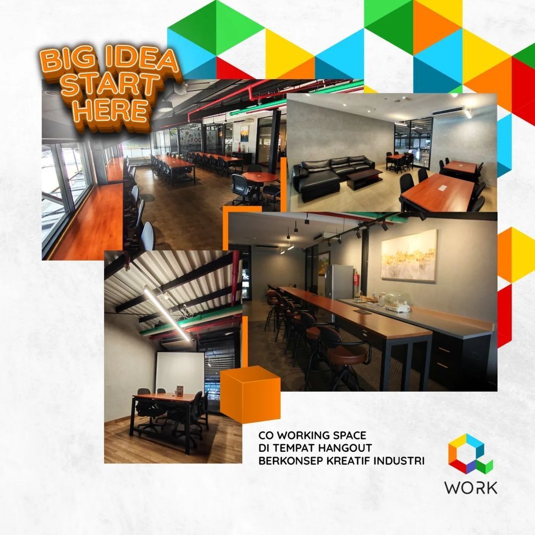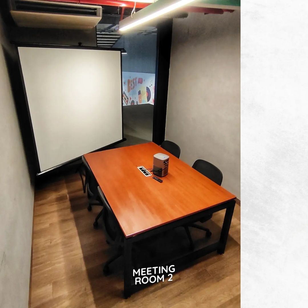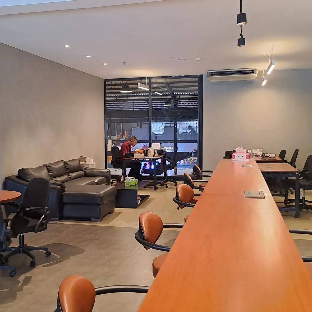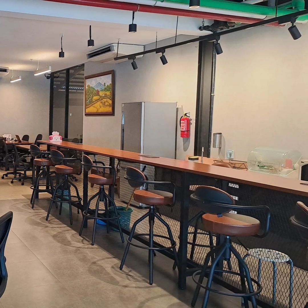Co working space in a hangout place with a creative industrial concept. Has 2 Modern Meeting Rooms, Chil Area, and Working Area which are cozy and spacious. With guaranteed security access using eye sensors, fingerprints and cards. With projector, wifi, refrigerator, dispenser facilities